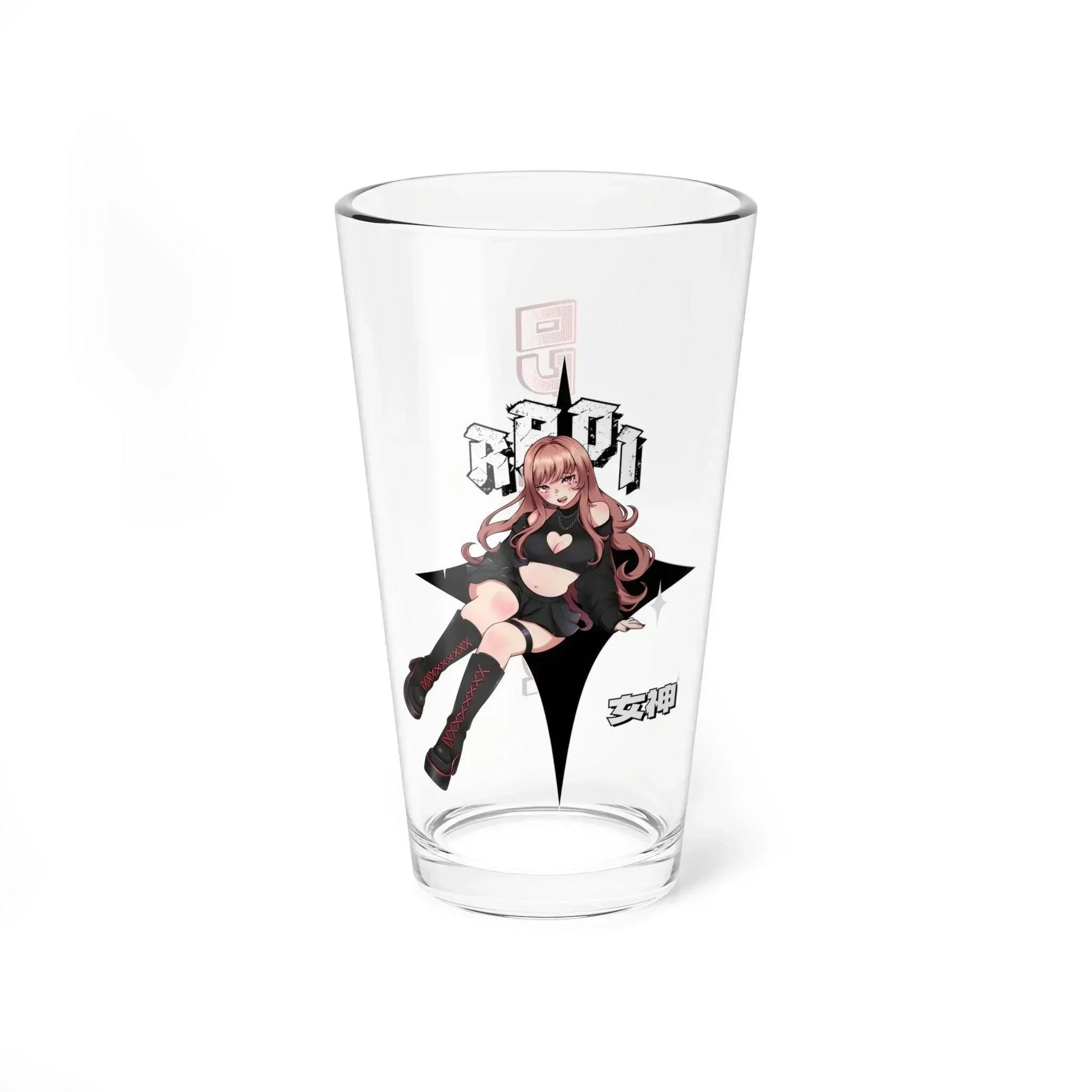 This Beer Glass sports a one of a kind design of Rapi from NIKKE. This glass is covered in a design of Emo Rapi. This is a great gift for gamers and anime enthusiasts. Could even be a nice addition to your own collection. Made from 100% glass.